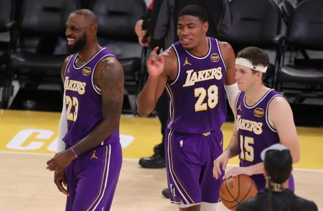 猛龙队算得上多点开花,全队投出了49%的投篮命中率,首发五虎全部得分上双,奎克利和沃尔特联手拿下30分,英格拉姆砍下20分7篮板7助攻,巴恩斯更是独得23分11篮板9助攻,中锋马穆也有13分进账,替补席巴特尔揽下10分。湖人也是进攻犀利,小里弗斯暴走,轰下44分5篮板11助攻的数据,八村塁攻下12分,艾顿拿到17分,拉拉维亚和小史密斯也都得分上双。